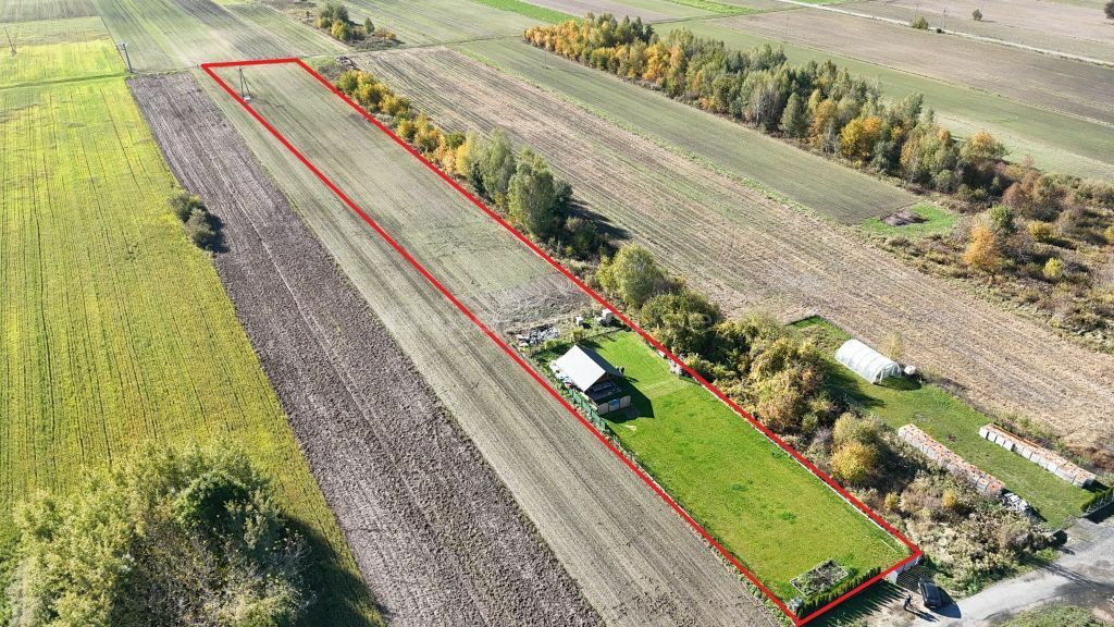 Działka o łącznej pow. 5716m2 o głównych wymiarach 20x290m, jest częściowo ogrodzona - ogrodzenie panelowe z podmurówką, bramą wjazdową i furtką. Na działce znajduje się domek letniskowy z altaną o łącznej pow. 40m2, który może być wykorzystywany rekreacyjnie, służyć jako baza wypadowa na weekendy, jest też idealnym miejscem na przechowywanie. Na działce prąd oraz woda ze studni głębinowej.